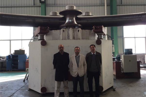 三輥型材彎曲機的托輥矯正輥有三個運動:(1)可以做升降運動;(2)可同時與下輥做弧線升降運動;(3)可同時做旋轉運動,保證型材在卷制過程中的成型質量。兩個下輥的升降位移由數(shù)字顯示,醒目直觀,該機配有Du立的操作臺,操作方便。機器的床身為鋼板焊接結構,并經(jīng)退火處理消除內(nèi)應力。邊輥安裝在床身的空腔內(nèi),通過兩邊邊輥油缸,邊輥可繞中軸沿床身上的弧線槽作弧線升降運動。托輥安裝在左右轉臂上,它可隨邊輥作弧線運動,同時通過托輥旋轉油缸和托輥升降油缸可繞轉臂作規(guī)定角度的旋轉運動和升降運動,邊輥油缸的升降配有數(shù)顯裝置,方便操作。整機有足夠的強度和剛度,能夠滿足機器能力范圍內(nèi)的型材的彎曲,更換模具可以卷彎角鋼、扁鋼、方鋼、槽鋼、工字鋼、圓鋼、鋼管等型材。
